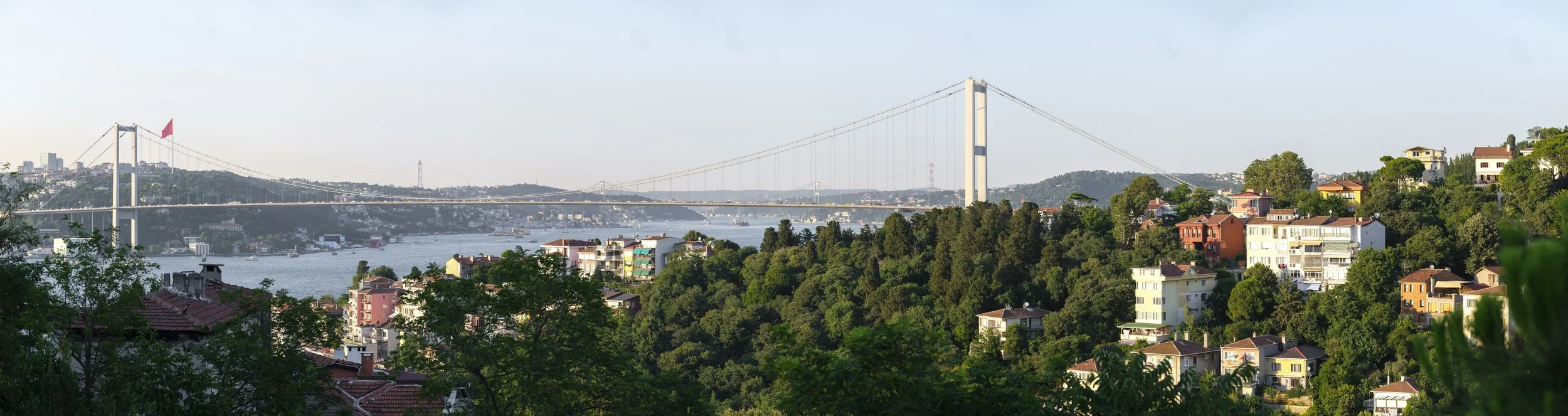 After that pleasant encounter, we kept wandering through narrow roads filled with cats until something caught our eye: a beautiful white-marble and emerald-glass mosque perched on hill. Climbing the hill gave us beautiful views of the mosque, its feline guardian, and the many bridges crossing the Bosphorus.